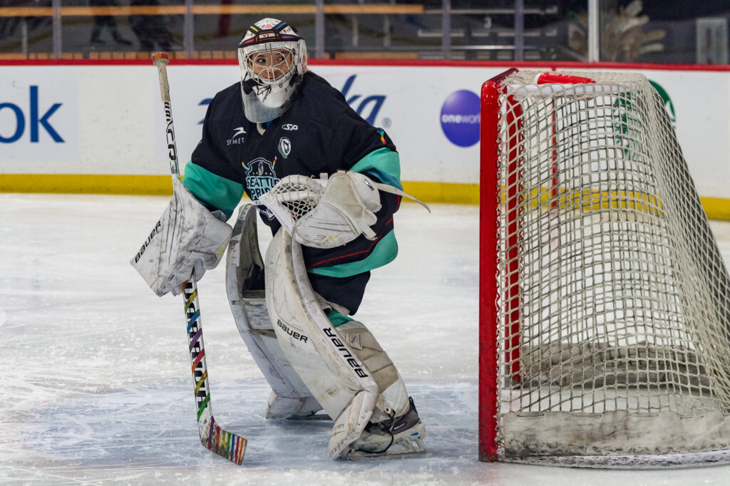 With four teams and over 75 players, the Seattle Pride Hockey League conducts round-robin matches every Saturday evening throughout the spring and summer seasons at the Sno-King Ice Arenas in Kirkland.